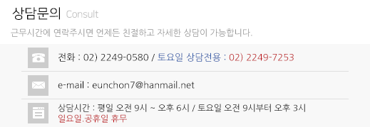 주소 : 서울시 동대문구 장한로 27가길 53 은천노인종합복지센터 | TEL : 02-2249-0580 / 02-2249-0581 | FAX : 02-2249-0579 / 02-6227-0579