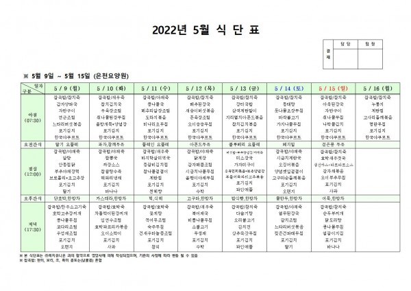 5월 둘째주 식단표 페이지 정보 작성자 은천노인복지회 작성일22-05-06 10:04 조회103,774회 댓글0건 관련링크 이전글 다음글 목록 답변 본문 . 이전글 다음글 목록 답변