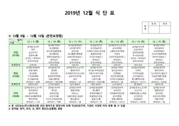 12월 둘째주 식단표 페이지 정보 작성자 은천노인복지회 작성일19-12-17 09:56 조회185,160회 댓글0건 관련링크 이전글 다음글 목록 답변 본문 12월 둘째주 식단표 이전글 다음글 목록 답변