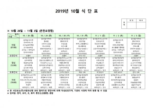 10월 다섯째주 식단표 페이지 정보 작성자 은천노인복지회 작성일19-11-04 15:11 조회190,330회 댓글0건 관련링크 이전글 다음글 목록 답변 본문 10월 다섯째주 식단표 이전글 다음글 목록 답변