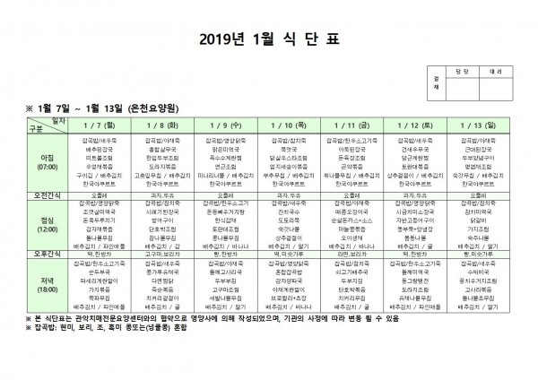 1월 첫째주 식단표 페이지 정보 작성자 은천노인복지회 작성일19-01-22 13:31 조회205,390회 댓글2건 관련링크 이전글 다음글 목록 답변 본문 1월 첫째주 식단표 이전글 다음글 목록 답변