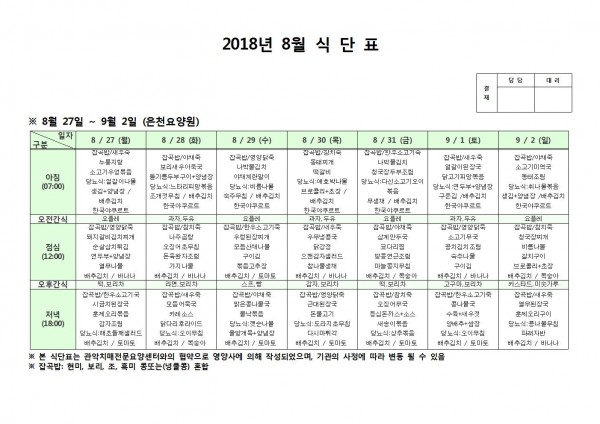 8월 다섯째주 식단표 페이지 정보 작성자 은천노인복지회 작성일18-09-11 09:27 조회204,161회 댓글0건 관련링크 이전글 다음글 목록 답변 본문 8월 다섯째주 기단표 이전글 다음글 목록 답변