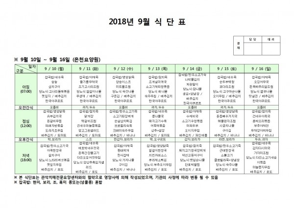 9월 둘째주 식단표 페이지 정보 작성자 은천노인복지회 작성일18-09-18 09:52 조회203,044회 댓글0건 관련링크 이전글 다음글 목록 답변 본문 9월 둘째주 식단표 이전글 다음글 목록 답변
