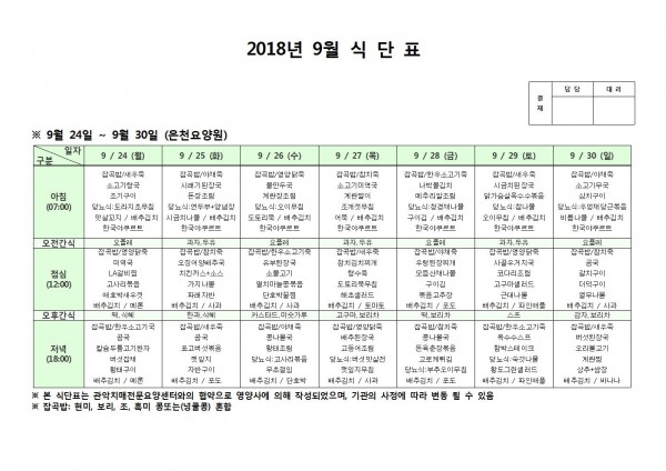 9월 넷째주 식단표 페이지 정보 작성자 은천노인복지회 작성일18-10-08 11:06 조회202,707회 댓글0건 관련링크 이전글 다음글 목록 답변 본문 9월 넷째주 식단표 이전글 다음글 목록 답변