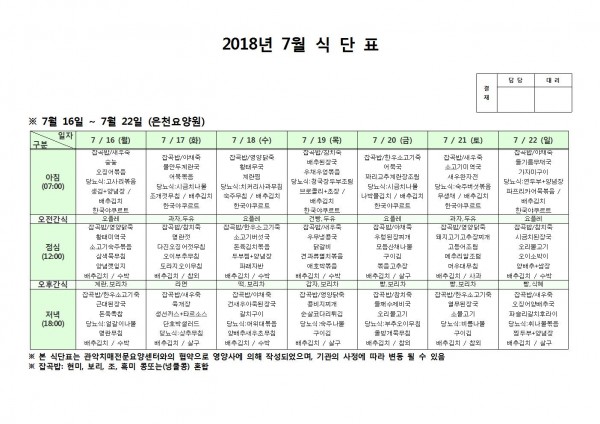 7월 셋째주 식단표 페이지 정보 작성자 은천노인복지회 작성일18-07-23 11:24 조회205,290회 댓글0건 관련링크 이전글 다음글 목록 답변 본문 7월 셋째주 식단표 이전글 다음글 목록 답변