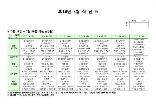 7월 넷째주 식단표 페이지 정보 작성자 은천노인복지회 작성일18-08-13 11:35 조회204,298회 댓글0건 관련링크 이전글 다음글 목록 답변 본문 7월넷째주 식단표 이전글 다음글 목록 답변
