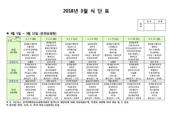 3월 둘째주 식단표 페이지 정보 작성자 은천노인복지회 작성일18-03-05 16:27 조회193,717회 댓글0건 관련링크 이전글 다음글 목록 답변 본문 3월 둘째주 식단표 이전글 다음글 목록 답변