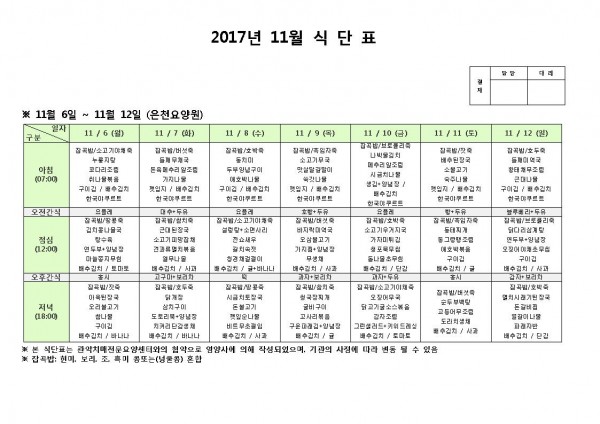 11월 둘째주 식단표 페이지 정보 작성자 은천노인복지회 작성일17-11-09 10:44 조회183,353회 댓글0건 관련링크 이전글 다음글 목록 답변 본문 11월 둘째주 식단표 이전글 다음글 목록 답변