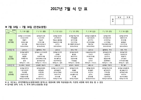 7월 둘째주 식단표 페이지 정보 작성자 은천노인복지회 작성일17-07-11 09:20 조회177,420회 댓글0건 관련링크 이전글 다음글 목록 답변 본문 7월 둘째주 식단표 이전글 다음글 목록 답변