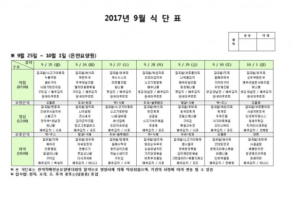 9월 넷째주 식단표 페이지 정보 작성자 은천노인복지회 작성일17-10-11 10:51 조회180,479회 댓글0건 관련링크 이전글 다음글 목록 답변 본문 9월 넷째주 식단표 이전글 다음글 목록 답변