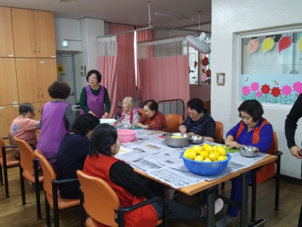어르신들과 생강청과 레몬청을 만들었습니다.