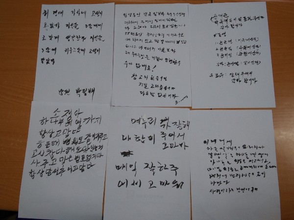 서예교실(가족에게 편지쓰기) 페이지 정보 작성자 은천노인복지회 작성일18-08-28 16:22 조회37,498회 댓글0건 관련링크 이전글 다음글 목록 답변 본문 가족중 가장 고마운 사람에게 편지쓰기를 하였습니다. 붓펜으로 종이한장 가득 고마운 마음을 표현하시는 어르신들 모습입니다. 이전글 다음글 목록 답변