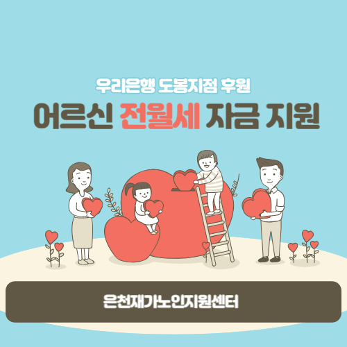 [재가노인지원서비스] 우리은행 전월세 자금 후원 페이지 정보 작성자 은천노인복지회 작성일23-07-12 16:03 조회10,460회 댓글0건 관련링크 이전글 다음글 목록 답변 본문 우리은행 도봉지점에서 저소득 어르신들을 위한 전월세 자금을 후원해 주셨습니다. 이전글 다음글 목록 답변