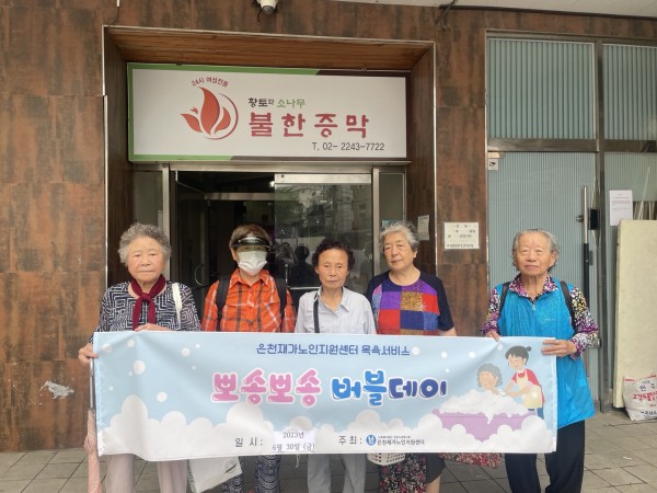 [재가노인서비스] 목욕지원사업 '뽀송뽀송 버블데이' 페이지 정보 작성자 은천노인복지회 작성일23-07-12 16:12 조회10,009회 댓글0건 관련링크 이전글 다음글 목록 답변 본문 장안동에 위치한 목욕탕에서 어르신들을 모시고 목욕서비스를 지원하였습니다. 이전글 다음글 목록 답변