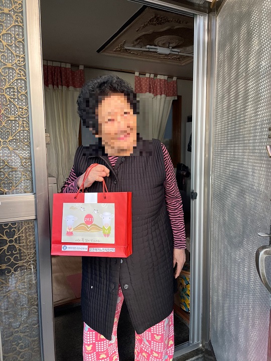 [재가노인지원센터] 설명절 선물지원서비스 페이지 정보 작성자 은천노인복지회 작성일21-02-26 09:42 조회24,443회 댓글0건 관련링크 이전글 다음글 목록 답변 본문 2021년 설 멸정을 맞이하여 어르신들을 찾아뵙고 선물을 전하면서 안부확인을 진행하였습니다. 이전글 다음글 목록 답변