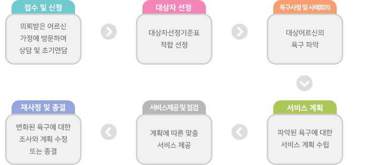 - 방문문의 : 유관기관 및 지역주민의 의뢰 시 대상 어르신 댁을 방문하여 면담 및 상담